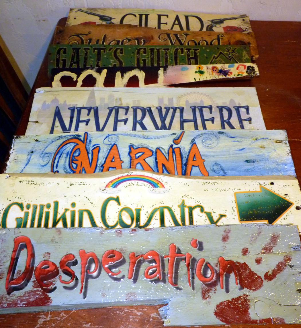 The kid’s name snowballs are just these craft foam balls. I cut them in half with a big knife and painted them with the same four-color style I used on the ice blocks, then wrote each student’s name on it with a sharpie. If I had this to do over, I would have painted them first. Because the foam is so porous, the sharpie bled a bit and the lines weren’t as crisp as I’d have liked.