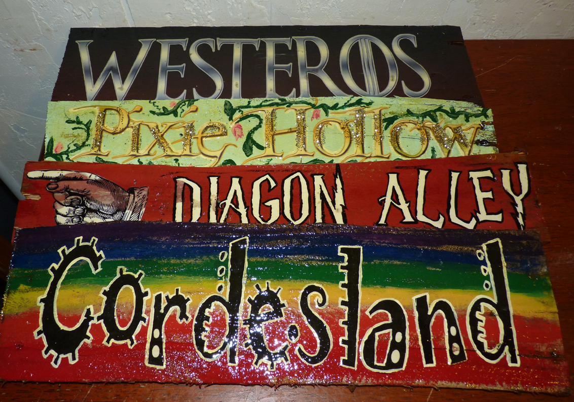 For the table, I pre-measured foam and built a three sided cover for the entire bottom. I then drew blocks on it, painted and carved the edges as I did the big foam blocks. The “snow” on the table is leftover white fur from the polar bear. We added a string of blue lights underneath the snow to give it some glow. The bit of snow over the top of the door is white fur also.