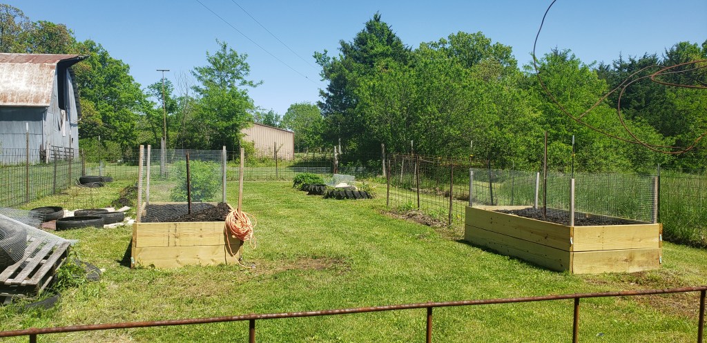 My plan is to have the garden built in such a way that I only have to run the mower down the walkways and not spend hours and hours weed eating around beds.